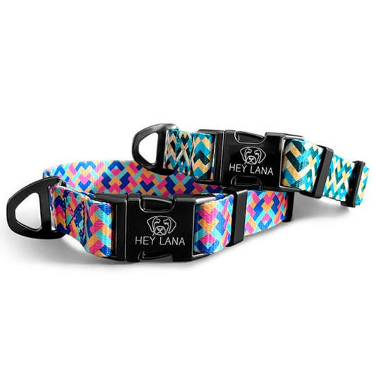 Hundehalsband Kunterbunt – Gelb/Blau